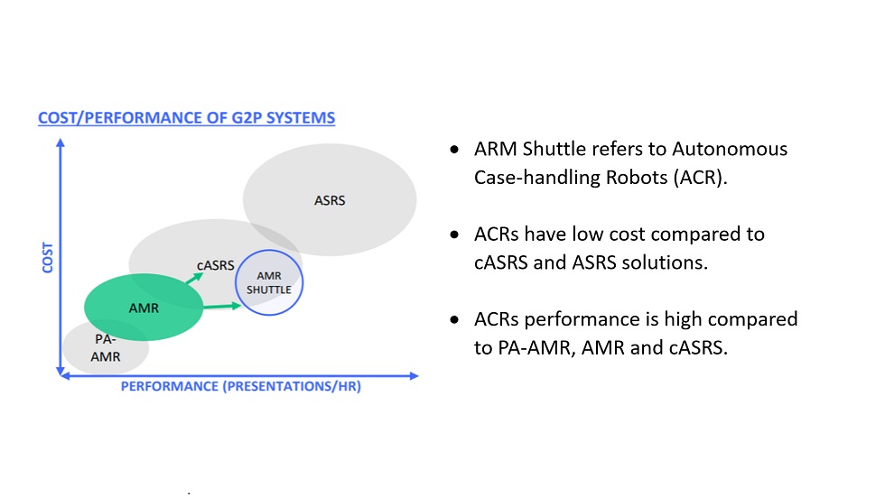 According to the Goods to Person Solutions 2020 report by STIQ, ACRs offer a high-performance yet affordable solution compared to other warehouse technologies.