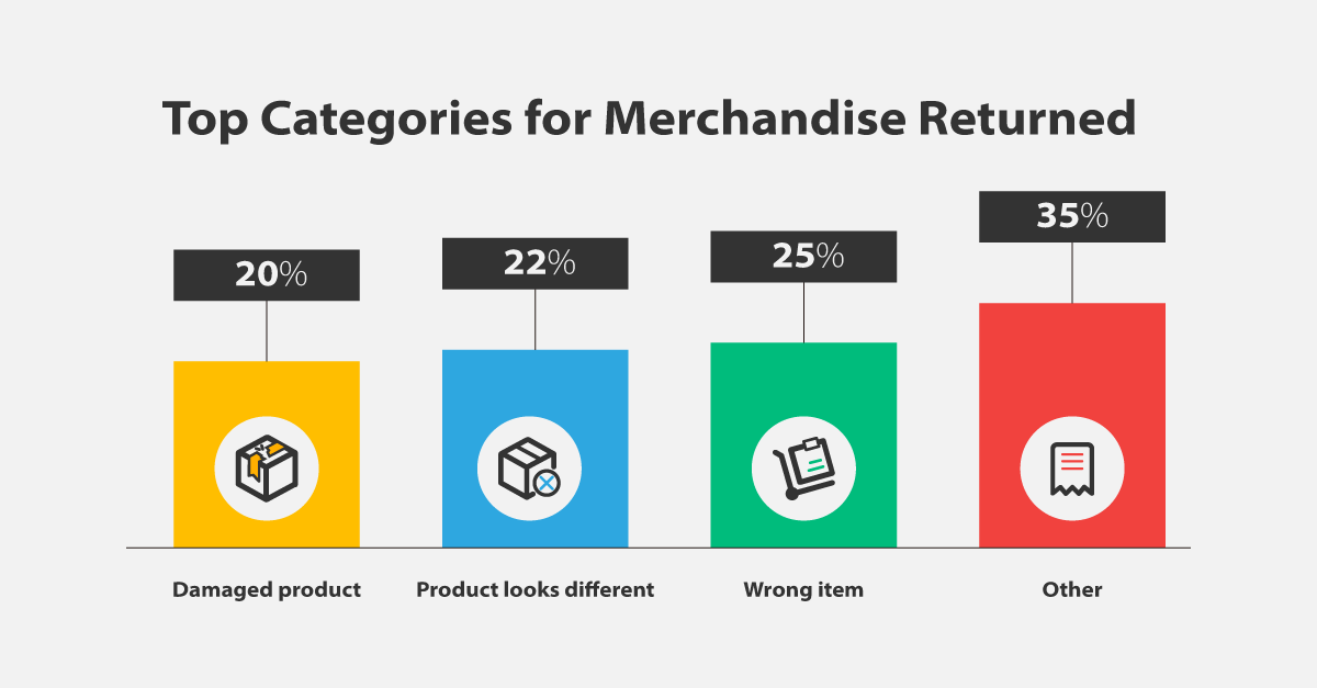 [Invesp]에 따르면, 제품의 손상, 사진과 다르게 생겼다는 등의 이유로 제품을 반품하는 소비자가 많습니다. 휴일 시즌에는 반품 수가 더욱 증가합니다.